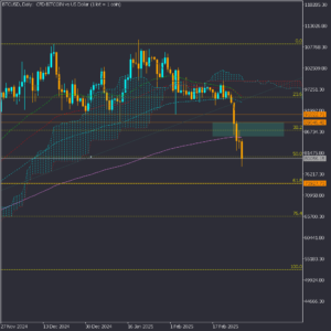 در حال حاضر سطح تقاضا در بازار های سهام با کاهش همراه بوده، و بازار های کریپتو و طلا نیز تحت تاثیر قرار گرفته است. قیمت بیتکوین به زیر 80 هزار دلار رسیده و حمایت های مهم میان مدت را شکسته و احتمال نزول بیشتر قیمت نیز در میان مدت تقویت شده است. شرکتهای بزرگ سرمایه گذاری و احتمالا حتی دولت ها از این روند نزولی ارزهای دیجیتال استقبال می کنند، چون می تواند فرصت مناسبی برای خرید این ارزها با قیمت پایین تر از فروشندگان خرد باشد. به همین دلیل با وجود اینکه احتمالا در بلند مدت قیمت بیتکوین باز هم به موج صعودی باز خواهد گشت، اما در میان مدت احتمال نزول قیمت تقویت شده است. اولین حمایت مهم میان مدت در برابر قیمت در محدوده 74 هزار دلاری قرار دارد و واکنش نسبت به این محدوده با اهمیت است. ضمن اینکه در حال حاضر قیمت در محدوده PRZ حمایت 80 هزار دلاری و سطح 50 فیبوناچی موج ماژور قبلی در نوسان است، و واکنش به این محدوده تعیین کننده است.