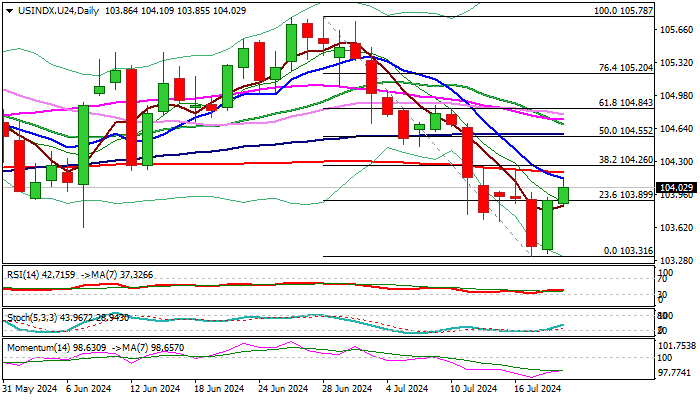The dollar index extended its recovery for the second consecutive day, bouncing strongly from a new four-month low of 103.31 on Thursday. This surge was driven by fresh risk aversion following a global cyber outage that impacted financial centers, banks, airlines, and other sectors, pushing investors towards safer assets.